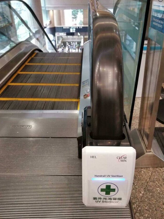УФ-стерилизатор для поручней на эскалаторе в Гонконге