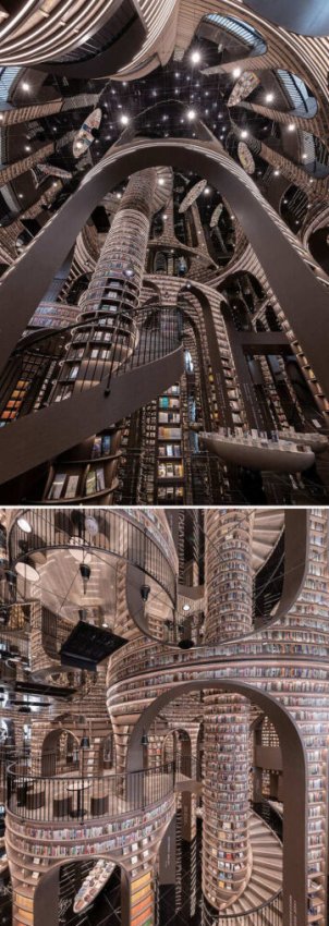 «Захватывает дух. Однако, на изогнутых книжных полках стоят фальшивые книги. На лестнице большое количество ограничивающих лент, потому что люди часто падают с них. В секции с библиотекой есть раздел Брайля, который был довольно крутым.»