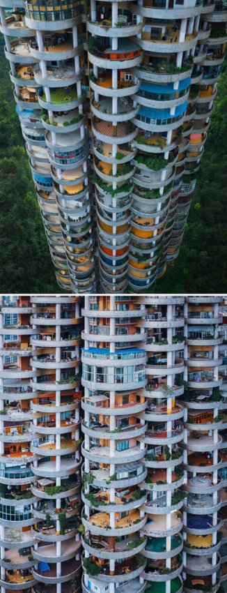 Экспериментальный проект «зеленого» жилья в китайском мегаполисе привел жителей в восторг от того, что у них есть свой собственный процветающий зеленый участок. Это комплекс Qiyi City Forest Garden в Чэнду, который гордится тем, что является вертикальным лесом. Изюминкой квартир является балкон, на котором высажено до 20 видов растений, которые обеспечивают пышную зелень и фильтруют воздух и шумовое загрязнение. Всего за несколько месяцев этот китайский комплекс превратился из эко-рая в настоящий ад. В квартирах, оставшихся незанятыми жильцами, поселились стаи назойливых насекомых, которые полностью испортили фасад здания, сделав его похожим на заброшенное, захудалое строение. Из-за нашествия комаров жильцов не пускают, и только около 10 семей уже заселились. Остальные восемь башен по 30 этажей каждая заросли собственными растениями, вызвавшими нашествие комаров. То, что могло бы стать зеленым видением при правильной обрезке и уходе, гниет на запущенных балконах, а ветви свисают через перила по всей башне, придавая ей кошмарный вид, настолько, что некоторые растения полностью поглотили некоторые балконы.