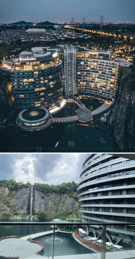 Он расположен в заброшенном карьере, а два нижних уровня полностью находятся под водой.