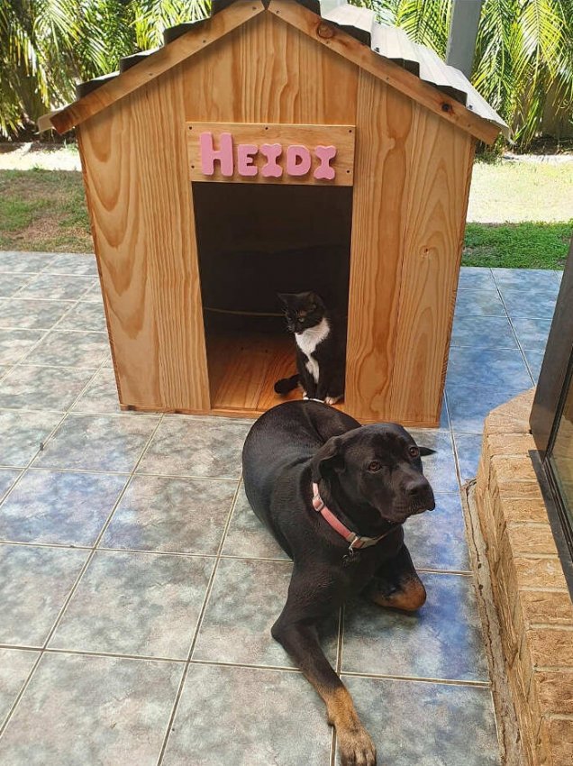 Хороший кошачий домик!!!Теперь вам придется построить рядом с этим еще один для вашей собаки?