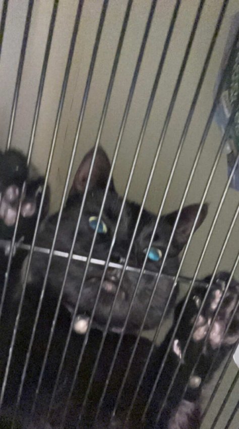 «Это мой кот Салем заглядывает в клетку для хомяков»
