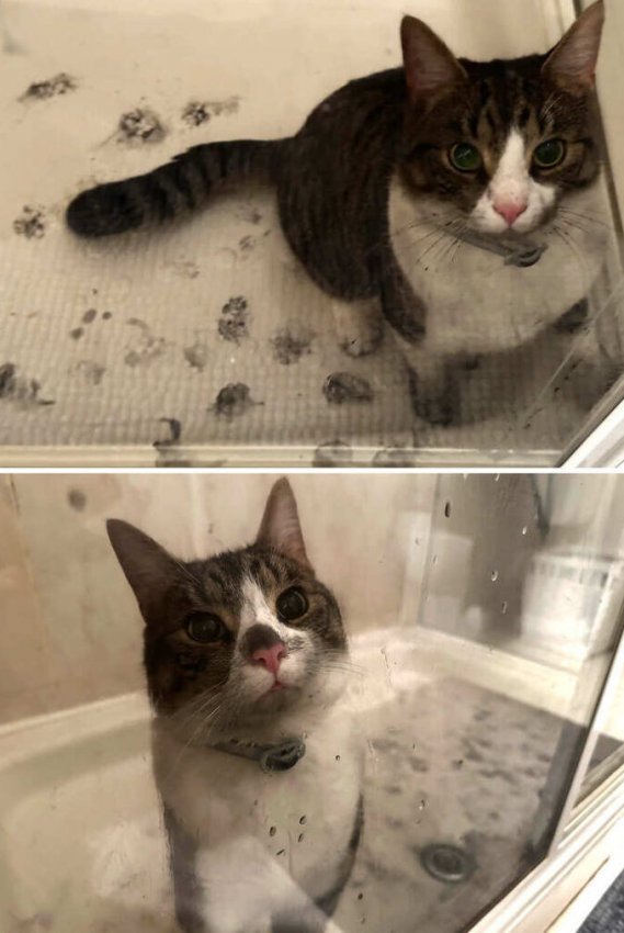 «Он был спокоен в душе. Просто стоял там и позволял нам мыть его. Если бы это был кто-то из наших других кошек, нас бы порезали на куски. Но тогда ни одна из наших других кошек не полезла бы в дымоход.»