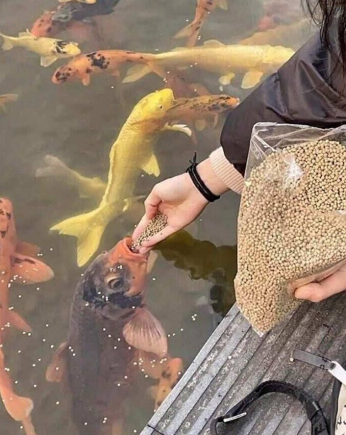 Эта рыба явно думает, что нашла автоматическую кормушку… с человеческим интерфейсом!