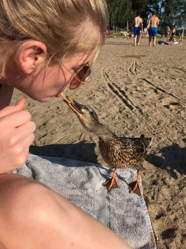 Новый способ делиться обедом: и уточка сыта, и фотография с новым другом обеспечена.