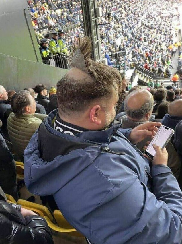 Супергерой на трибуне или просто лучший фанат? Точно знает, как произвести впечатление.