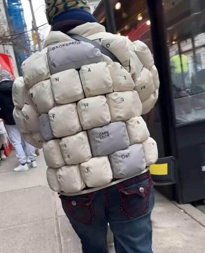 Если вдруг срочно понадобится написать письмо Деду Морозу на улице, у этого чувака точно найдётся клавиатура.