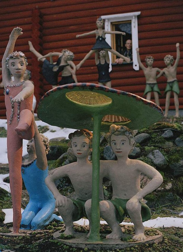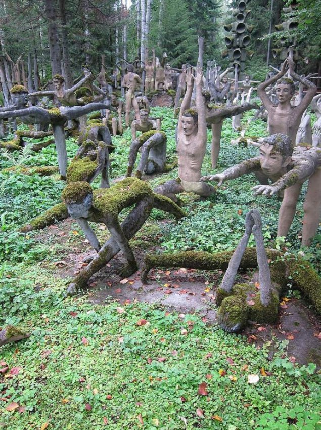 В глубине финских лесов скрывается одно из самых необычных творений, созданных человеческими руками. Представьте себе густую зелень, среди которой вдруг появляются загадочные скульптуры людей в самых разнообразных позах — кто-то смеётся, кто-то танцует, кто-то словно задумался о смысле жизни. Это не художественный музей, а личное произведение искусства одного рабочего, посвятившего свою жизнь созданию более 500 скульптур, которые обрели дом среди природы.