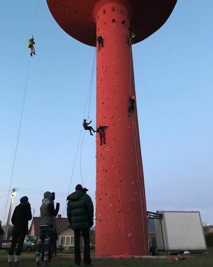Советская водонапорная башня как скалодром в Йонаве, Литва