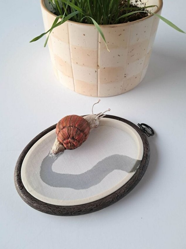 «Я вышила этого малыша на шелковой органзе, чтобы имитировать следы, которые они оставляют на окнах. Мне кажется, получилось очень мило! ??? Все вышито вручную.»