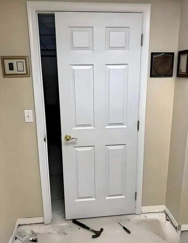 Даже не понятно, чем надо было руководствоваться, чтобы начать устанавливать эту дверь