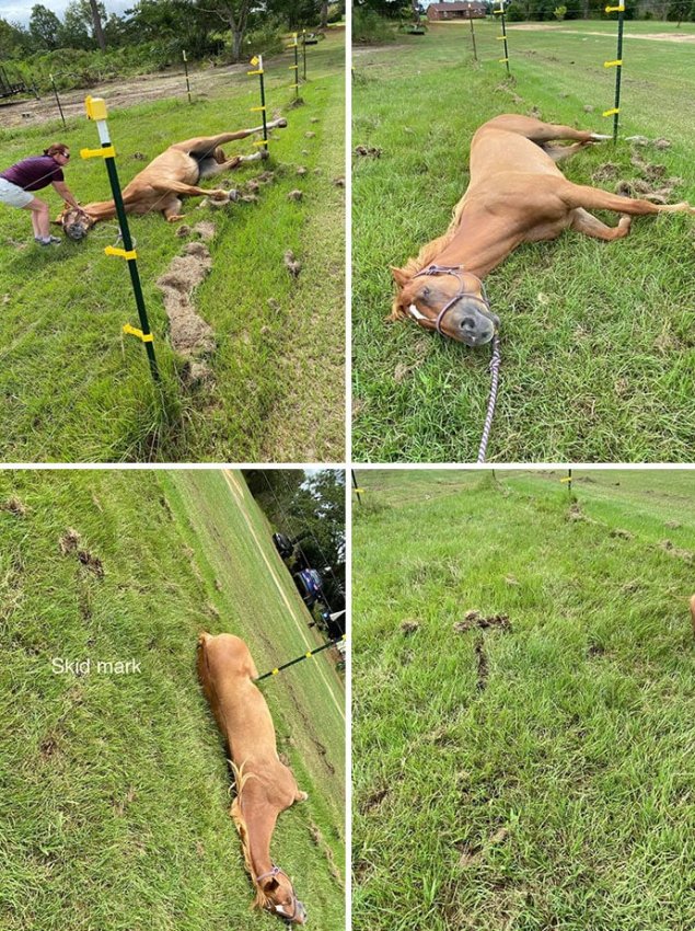 «Во-первых, с ней все в порядке. Просто дурочка. Я стоял в амбаре в пятницу днем, и Крикет делала круги по пастбищу, когда ее попытка остановиться пошла не по плану. Она проскользнулась и упала под забором, одной ногой опираясь на проволоку. Но когда она пыталась вытащить ногу, ее подкова зацепилась за проволоку, и она подумала, что оказалась в ловушке. Поэтому она умерла. Прямо там и тогда. Просто полностью отказалась от жизни. Эта дурочка отказалась вставать. Вероятно, от смущения. Когда я наконец убедил ее перевернуть свою большую задницу и встать, она встала, держа ногу над землей, как будто она была сломана. Я заставил ее идти, и она прохромала 4 шага, прежде чем опустила ногу, типа «о, у меня все еще есть нога», а затем побежала кругами, сопя и фыркая от своего почти смертельного опыта. И награда за лучшую драму достается… Крикету.»