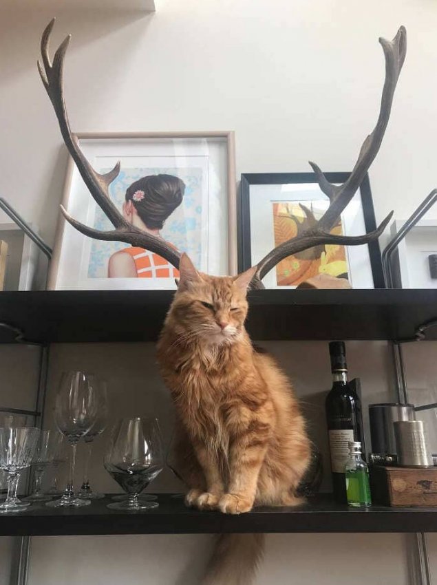 Когда не только царь зверей, но и царь рогатых. Этот кот точно возглавляет свою фантазийную стаю.