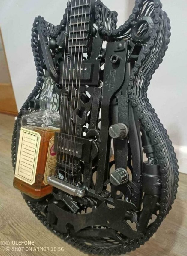 «Мой друг сделал эту электрогитару из деталей велосипеда, в которой находится бутылка виски»