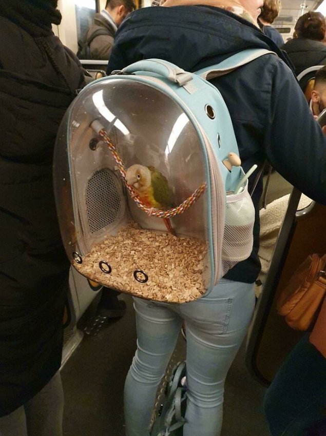 тот попугай явно в отпуске! Теперь он видит мир с самой комфортной обзорной площадки.