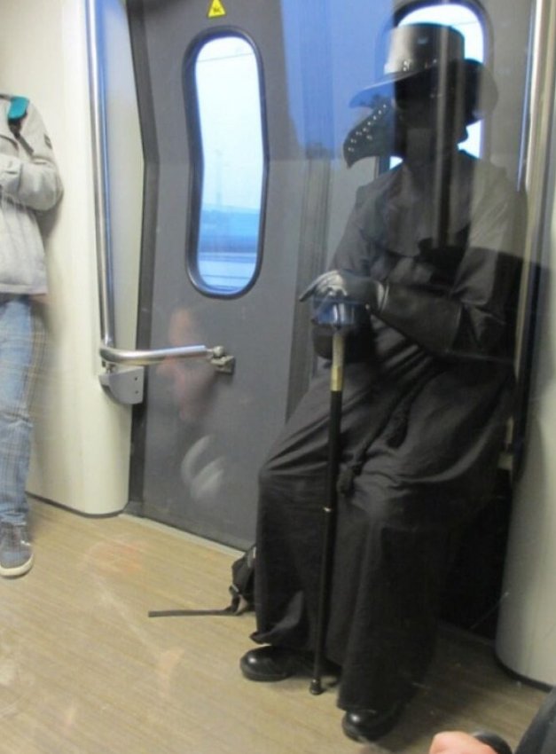 Когда случайно оказался на станции Средневековье. Этот пассажир явно знает, как выделиться из толпы.