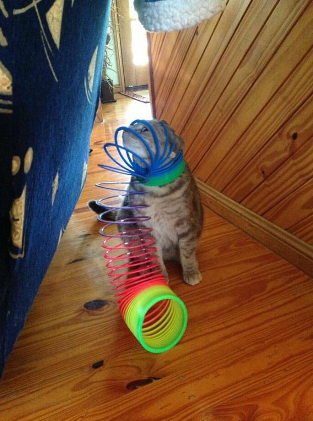 Теперь это не просто кот, а произведение современного искусства! Правда, выбраться из инсталляции оказалось сложнее, чем залезть.