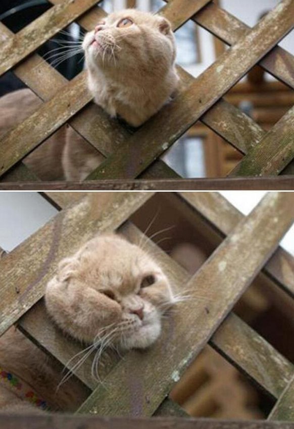Когда хотел показать всем, какой ты ловкий, но застрял. Теперь этот взгляд будет преследовать нас вечно!