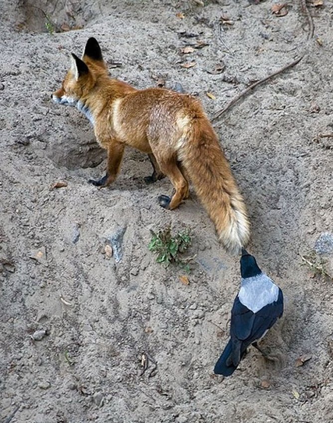 Когда ворона не просто умна, но ещё и заботлива. Она помогает черепахе перейти дорогу, потому что друзья познаются в беде. Кажется, этот дуэт заслуживает награды за гуманизм!