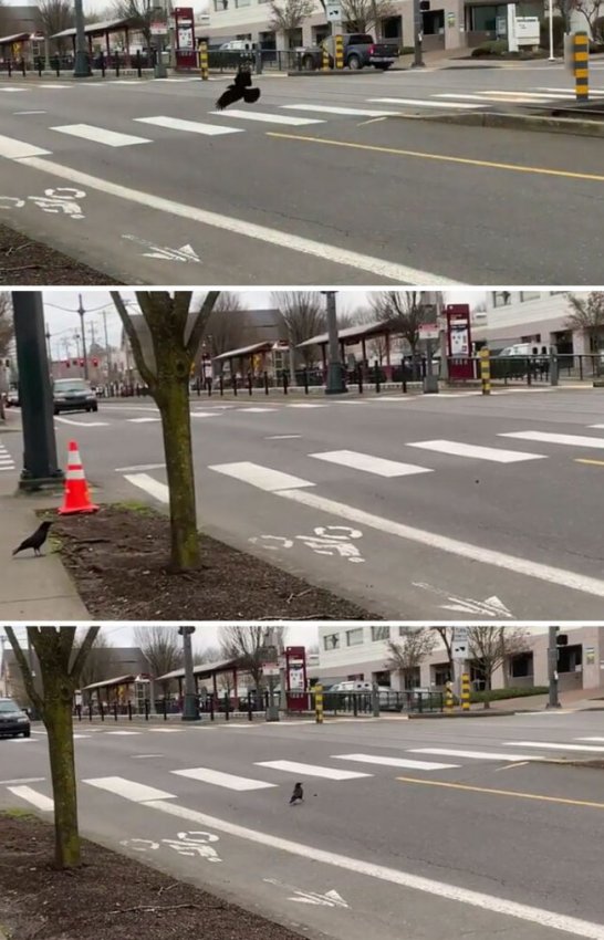 Эта ворона убедилась, что это безопасно! Кажется, скоро она начнёт штрафовать голубей за неправильную парковку.