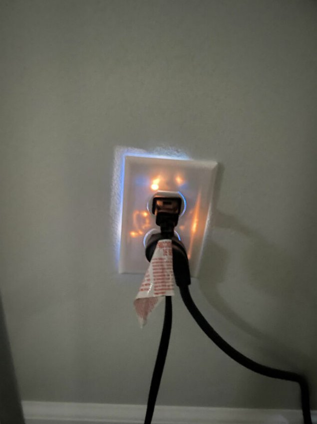 Эта розетка явно мечтала быть ночником. Однако стоит помнить, что такие огни лучше тушить сразу!