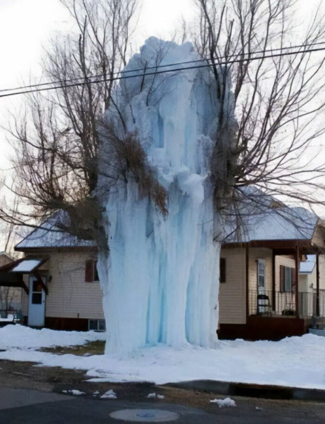 «Пожарный гидрант лопнул в морозную погоду! Я на самом деле думаю, что это выглядит довольно круто!!!»