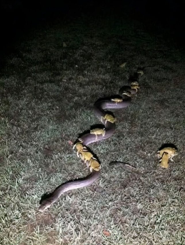 «Сегодня увидел, как лягушки используют змею как общественный транспорт»