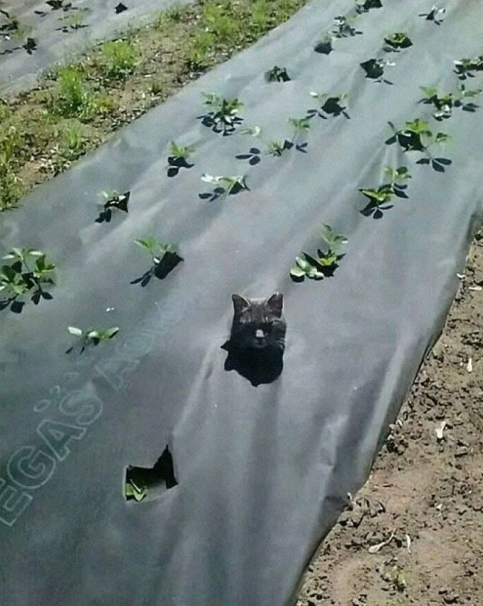 Этот мастер маскировки явно знает, как затеряться среди растительности. Кто сказал, что черная пленка не может быть удобной лежанкой?