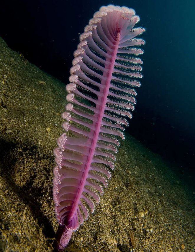 Морское перо — колониальное животное с многочисленными полипами, которые «укореняются» в песчаном или илистом субстрате. В основном они ловят планктон. При прикосновении некоторые морские перья излучают яркий зеленоватый свет.