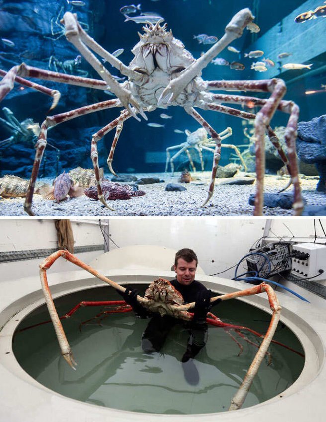Японский краб-паук обитает в водах Японии и имеет самый большой размах ног среди всех членистоногих, достигающий 5,5 метров. Хотя этот краб выглядит опасным, говорят, что у него мягкий характер.