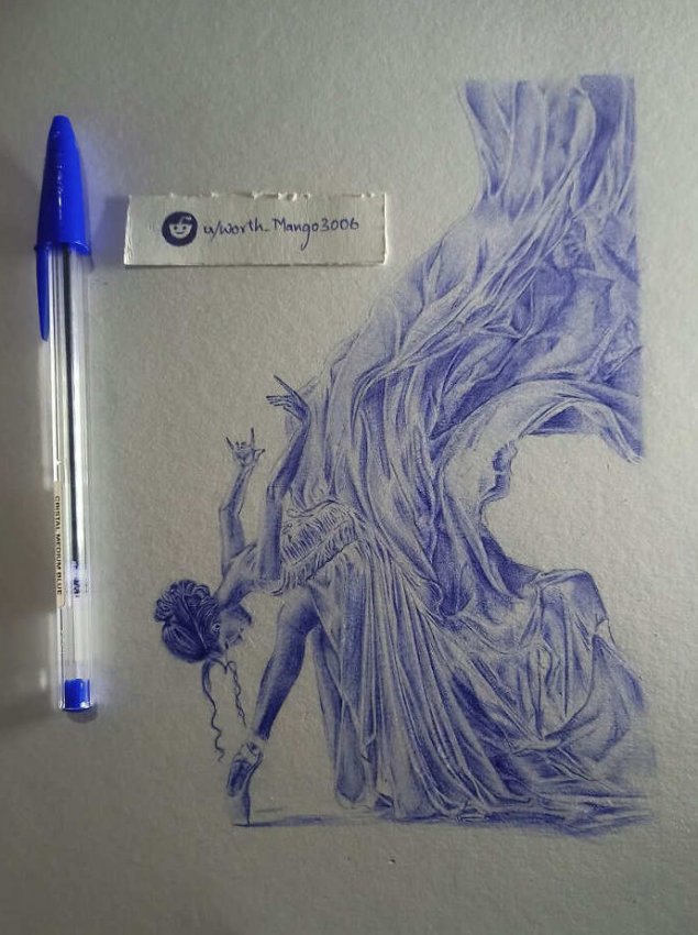«Я начала рисовать шариковыми ручками, потому что не могла позволить себе другие материалы, и теперь я просто не могу перестать ими пользоваться.»