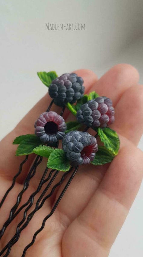 «Черно-малиновые шпильки для волос, сделанные мной из полимерной глины???»