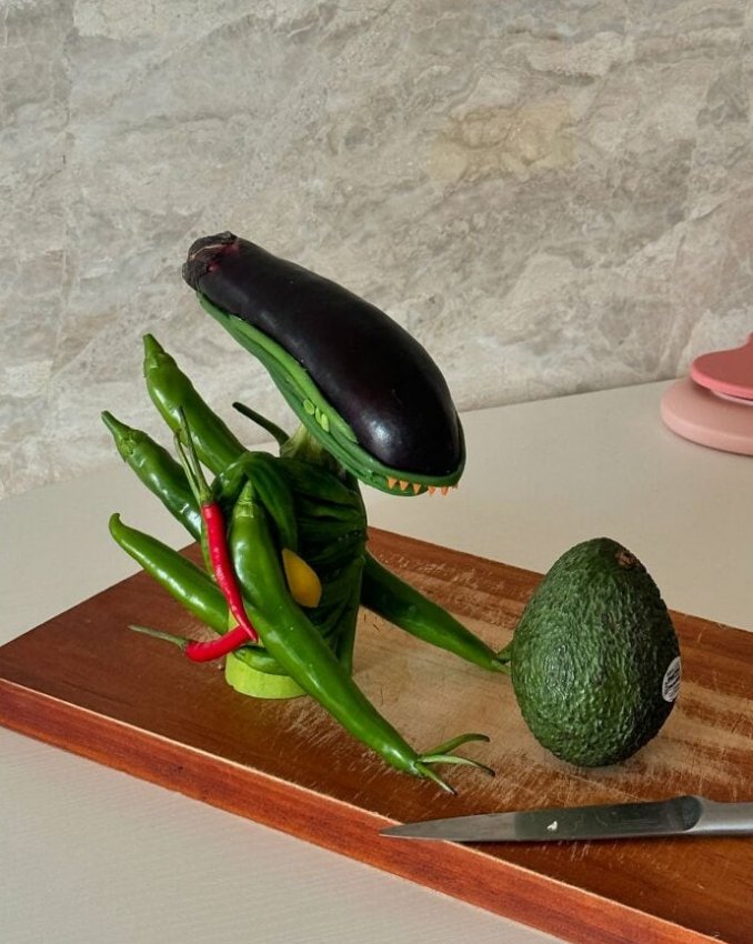 Если бы инопланетяне прилетели за вашим авокадо… и были из баклажанов и перца. Вкусно и немного страшно!