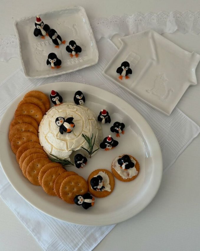 Это не просто закуска, а целая колония пингвинов на гастрономическом марше. Осторожно: могут растаять от вашей улыбки!