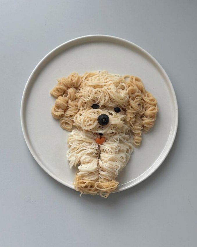 Никогда не думали, что лапша может быть такой пушистой? Этот милаха из вермишели настолько реалистичен, что хочется гладить, а не есть!