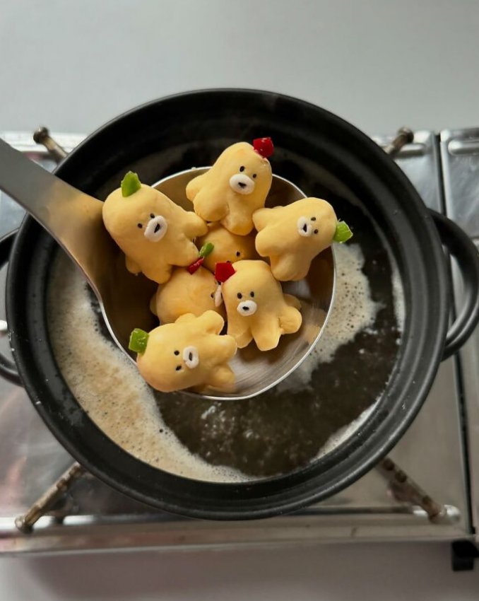 Если еда выглядит так, что хочется оставить её сфотографировать, а не съесть — вы точно попали на страничку Мин Кёнджин. Корейская художница превратила процесс готовки в настоящее искусство, где лапша обретает форму пуделя, а пельмени выглядят так мило, что о голоде забываешь моментально.