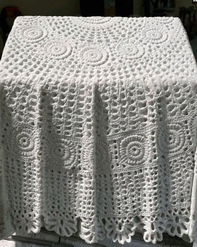 Кажется, что перед вами то, чем бабушки раньше накрывали телевизор, но на самом деле это — идеально обработанный камень.