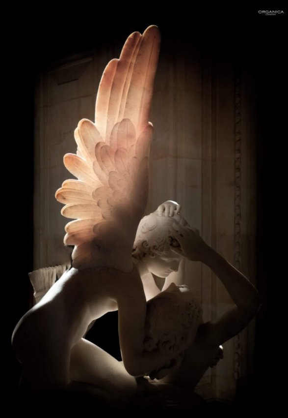 В своей знаменитой скульптуре «Психея, пробуждаемая поцелуем Амура» Канова так мастерски обработал мрамор, что крылья Амура кажутся светящимися. Канова говорил: «Я не умею читать и писать, но с молотком и зубилом пишу поэмы».