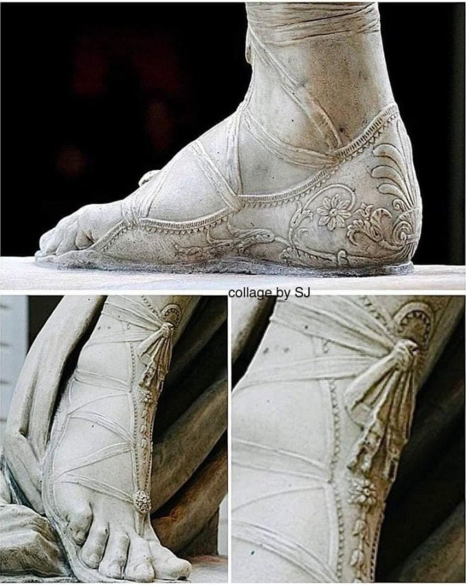 На статуе Марса из Капитолийских музеев можно рассмотреть каждую декоративную деталь на сандалиях — удивительное мастерство римских скульпторов.