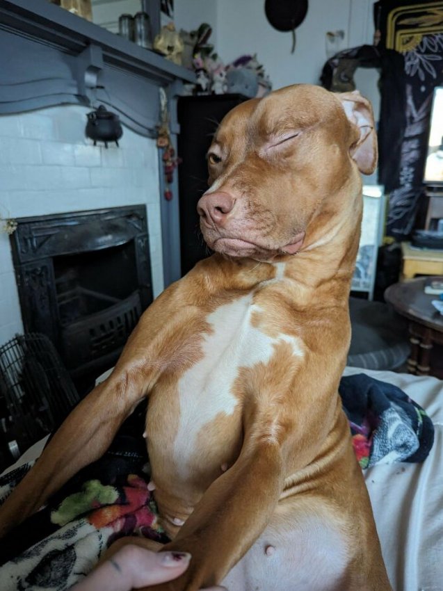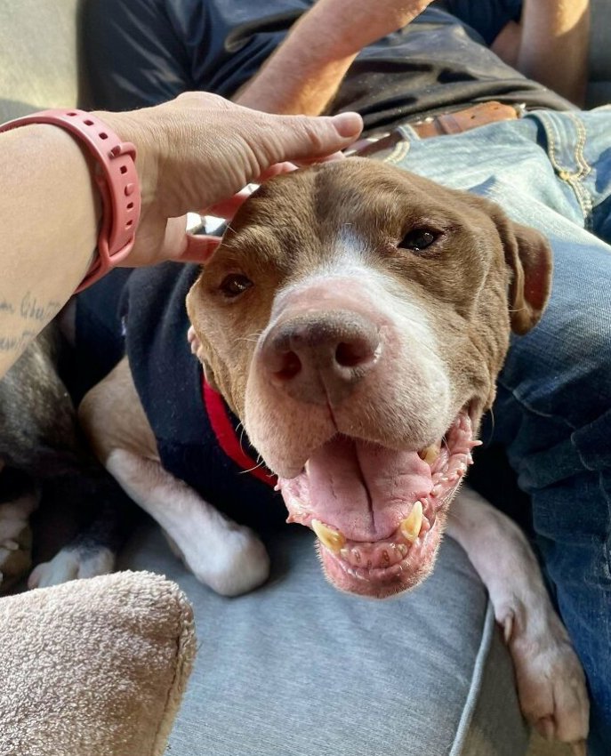 «Мы взяли его в конце ноября 2024 года. Нам сказали, что ему примерно полтора года. У него было тяжелое начало, он потерял своего хозяина и родственники оставили его на заднем дворе. Его отвезли к ветеринару и в конечном итоге передали в приют. Он потерял глаз, и ему удалили часть кишечника, что чуть не убило его. Он дружелюбен с другими животными, ласков с детьми и просто в целом очень любвеобилен.»