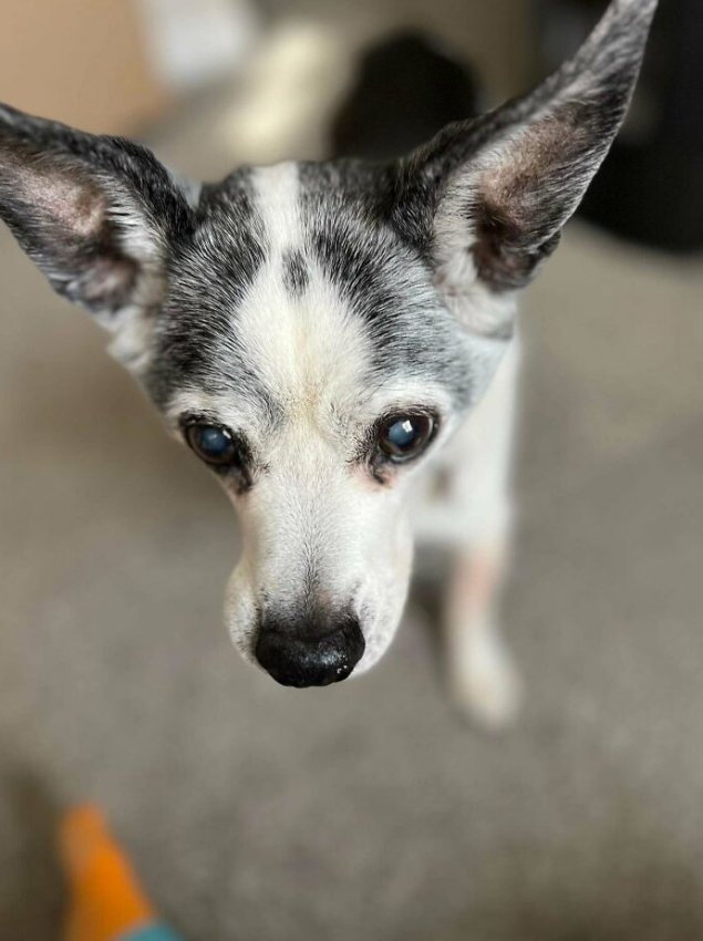 «Мы потеряли свою собаку, которую мы усыновили в октябре, из за серьёзной болезни, и хотя это было ужасно, мы хотели продолжать усыновлять пожилых собак. Зиппи, судя по всему, 18-летний дедушка, но он ведет себя гораздо моложе!»