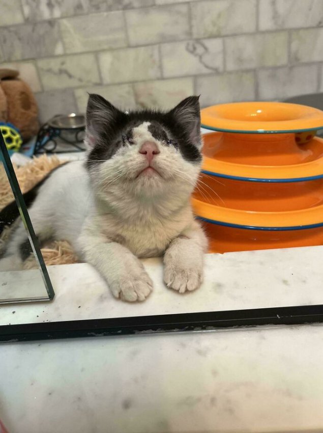 «Я потеряла свою собаку-душу (Инди) 6 месяцев назад, и жизнь без нее уже не та. Я взяла ее, когда мне было 15, и мы росли вместе, мы всегда были вдвоем. Сейчас мне 30, и недавно я переехала одна в новый город. Мне было некомфортно заводить еще одну собаку, но я очень хотела взять кошку. Я месяцами искала информацию о приютах на сайтах и ??много раз приезжала лично. Но у меня никогда не было «того чувства», как когда я нашла Инди, пока я не увидела этого милого мальчика.»