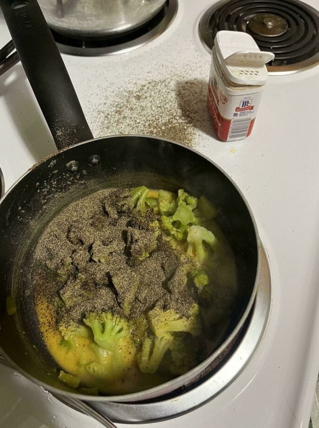 Когда крышка решила сыграть против тебя, и брокколи утонула в перце. Готовить дома — всегда маленькая рулетка.