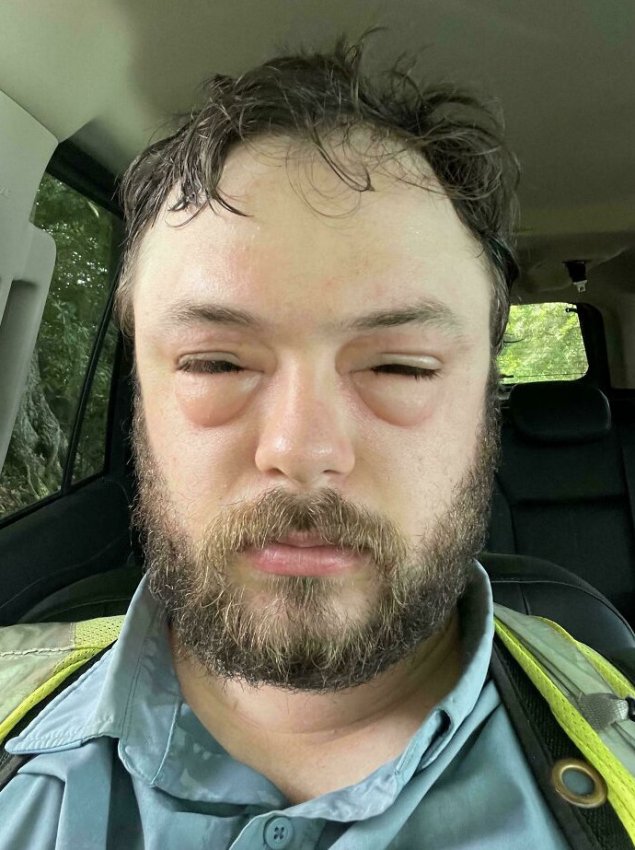 Парень, который выглядит так, будто его укусил целый рой пчёл, но он всё равно на работе. Настоящий герой… или жертва судьбы.