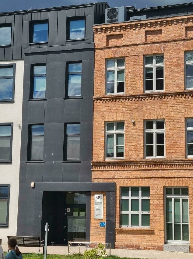 Когда старое здание встретилось с новым архитектором и такой: «Ты точно сюда пристроишься?» Итог — стильный конфликт эпох. Кирпичи против металла, история против Wi-Fi.