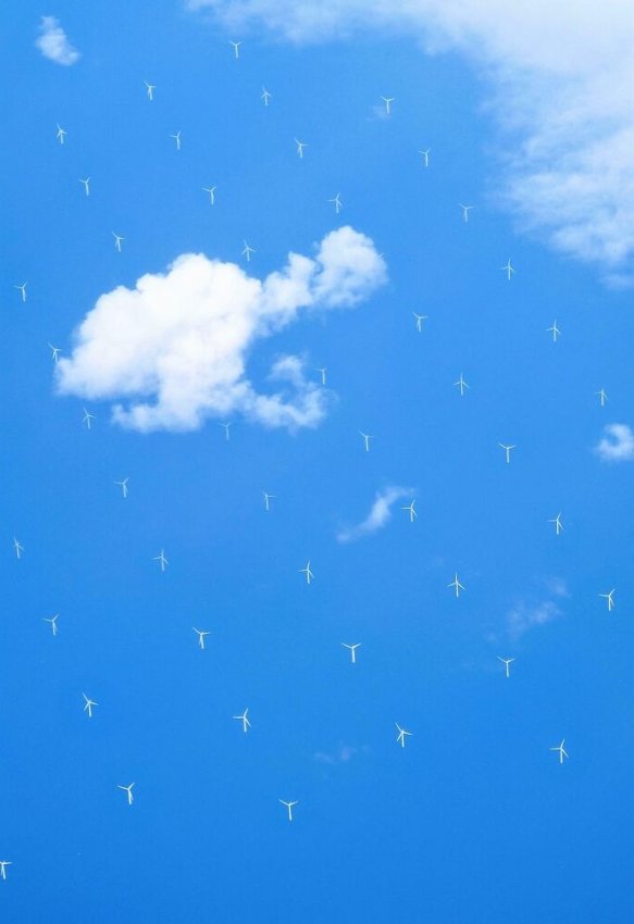 Нет, это не рой мини-дронов и не графика из видеоигры — это реальные ветряные турбины, снятые с самолёта. Они парят, как воздушные семена одуванчика, среди облаков и неба. Кто-то скажет «ошибка симуляции», а мы скажем — шедевр!