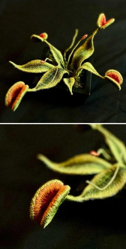 Когда цветок не только красив, но и как будто собирается закусить твоей рукой. Да-да, это вышивка, а не кадр из ботанического триллера. Уровень реализма — «положи пинцет и отойди медленно». Идеально для тех, кто любит природу, но не хочет кормить настоящих хищников.