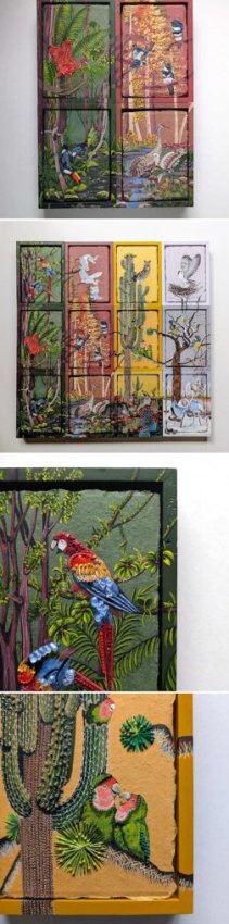 Птицы и биомы – 12 взаимосвязанных работ в смешанной технике
