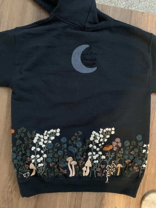 «Мне очень понравились темные цвета на черном фоне, и было весело вышивать грибы.»