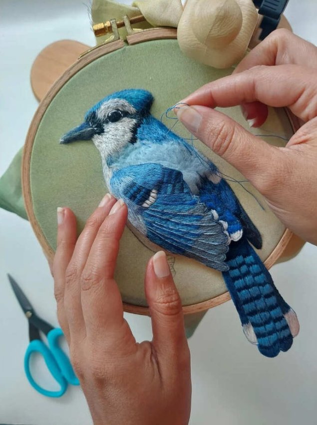 «Я вышила эту сойку несколько лет назад, но она до сих пор остается одной из моих самых любимых работ»